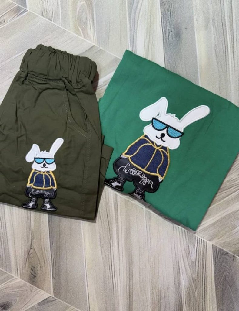ست تیشرت و شلوارک تی سی خرگوش (شلوارزیتونی) 120623