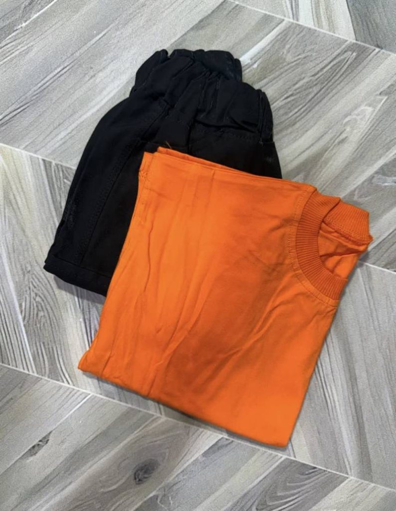 نارنجی(تیشرت نارنجی/ شلوارک مشکی)